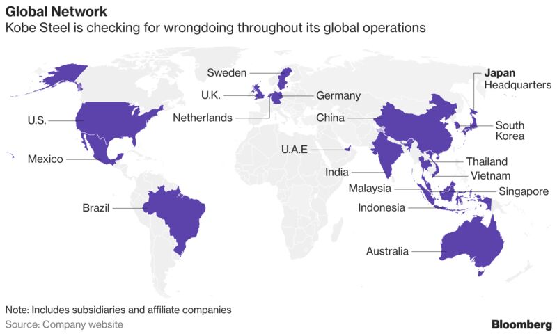 Kobe’s admission of misconduct in its steel business, which accounts for about a third of revenue, ratchets up the pressure on Japan’s third-biggest steelmaker. The company’s disclosures had up until now dealt with aluminum, copper and iron ore products used in everything from cars to computer hard drives to Japan’s iconic bullet trains, although there haven’t been any reports of products being recalled or safety concerns raised.